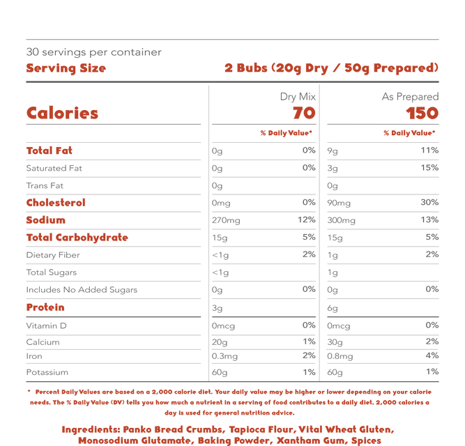 Universally regarded in the culinary world as the best breadcrumb available. Panko is made with steamed, crustless loaves of bread which results in a lighter, fluffier Bub.